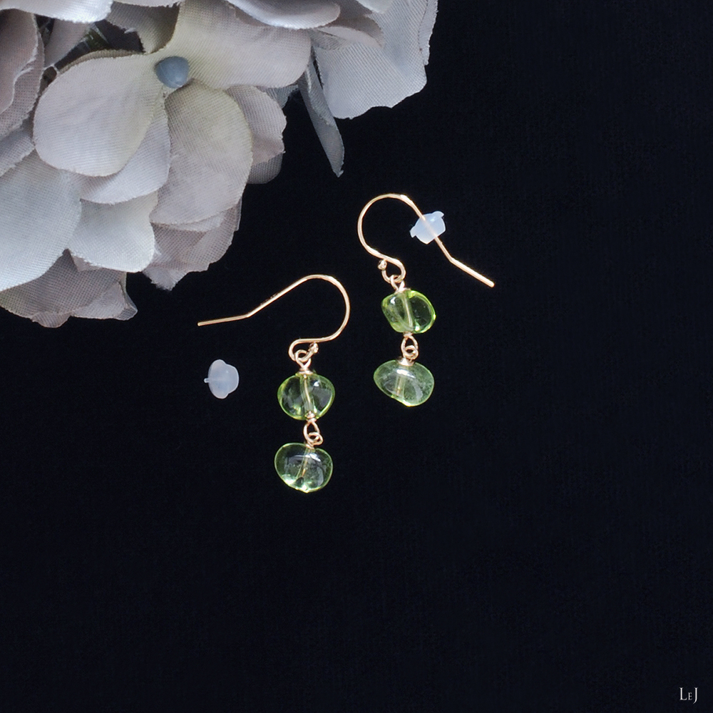少し前に、お客さまでもあるお友達から「マスクを外すときにピアスが引っ掛かって落ちるの」と聞いたので、これからはピアスにシリコン製のピアスキャッチを付けてお届けすることにしました。K14ゴールドフィルド製のピアスキャッチよりもシリコン製のほうが目立たずパーツのフック部分にフィットしやすいのが良いとのことで、とても勉強になりました。