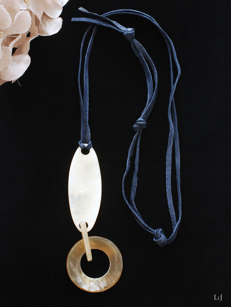 自然素材がもつ温かみと軽やかな着け心地、パールやゴールドなど他の素材のジュエリーとも仲良くなれるのも魅力です。オーバル型のモチーフに丸いリング状のモチーフを合わせてひとつのモチーフにして、心地よい落ち感を描けるようにしました。