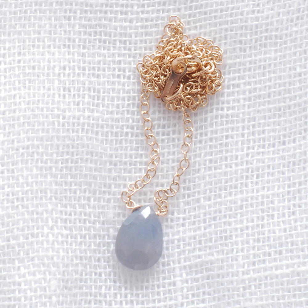 12×8×4mmの粒で、なんとも言えないサファイアならではの品格と華やかさを持っています。長さは41cm、普段のジュエリーにどうぞ。