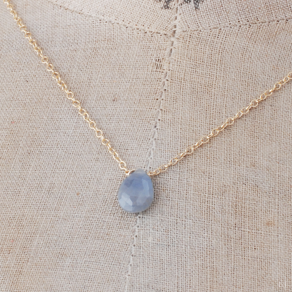 ニットによく似合う、ペールブルーのサファイアをセンターに配したネックレスを作りました。