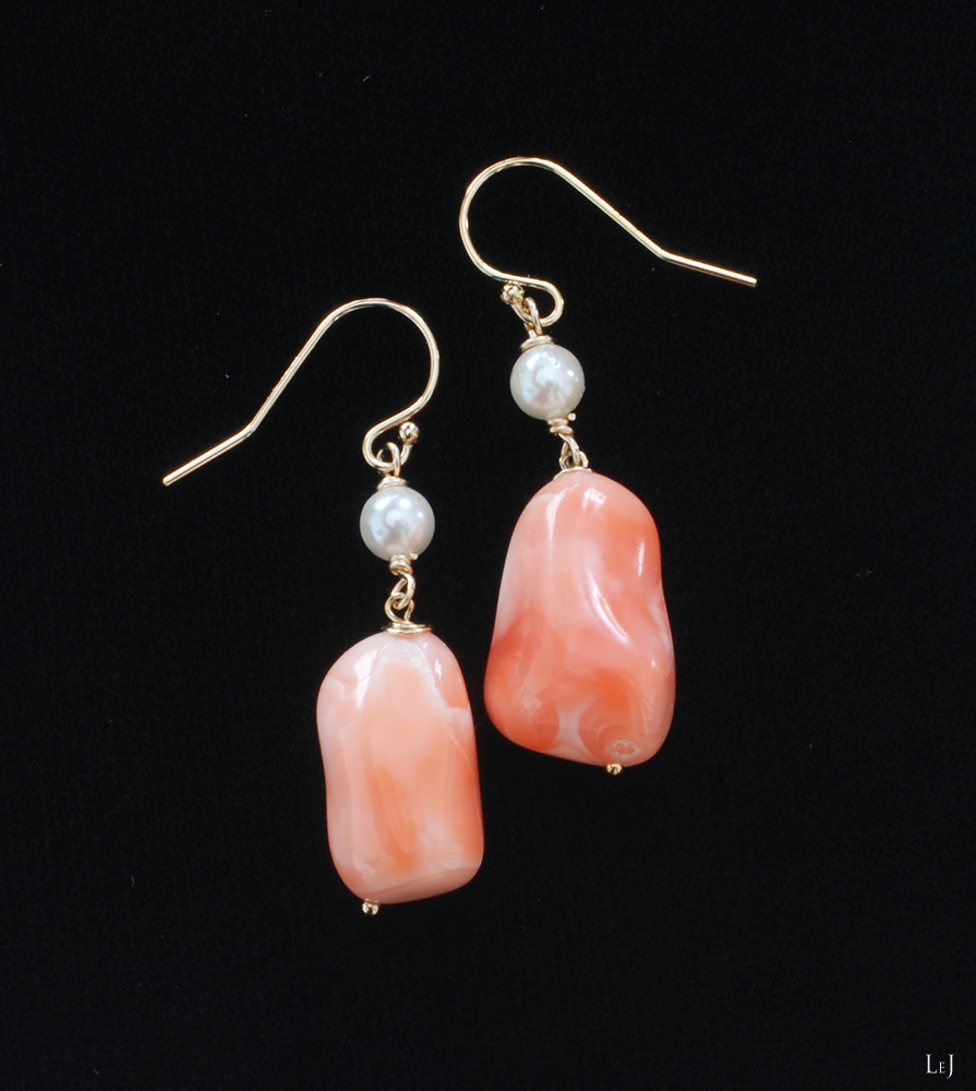 コーラルのジュエリーがよく似合う季節になりました。アコヤパールとナチュラルな大粒のコーラル。つやつやとした自然素材ならではの美しさに目を惹き付けられるようなジュエリーになりました。
