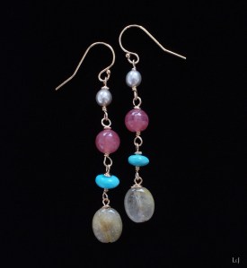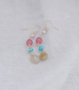 とてもきれいなメロウピンクのロードクロサイトを引き立たせるように、同じようなトーンの天然石を集めました。ちいさくても硬質的なかがやきをもつアコヤパール、アクセントになるアリゾナターコイズ、すべらかなルチルクオーツ。長い時間をかけてLeJ(ルジィ)のストックになってきた素材が集まり、季節の移ろいにも軽やかにフィットするような仕上がりになりました。