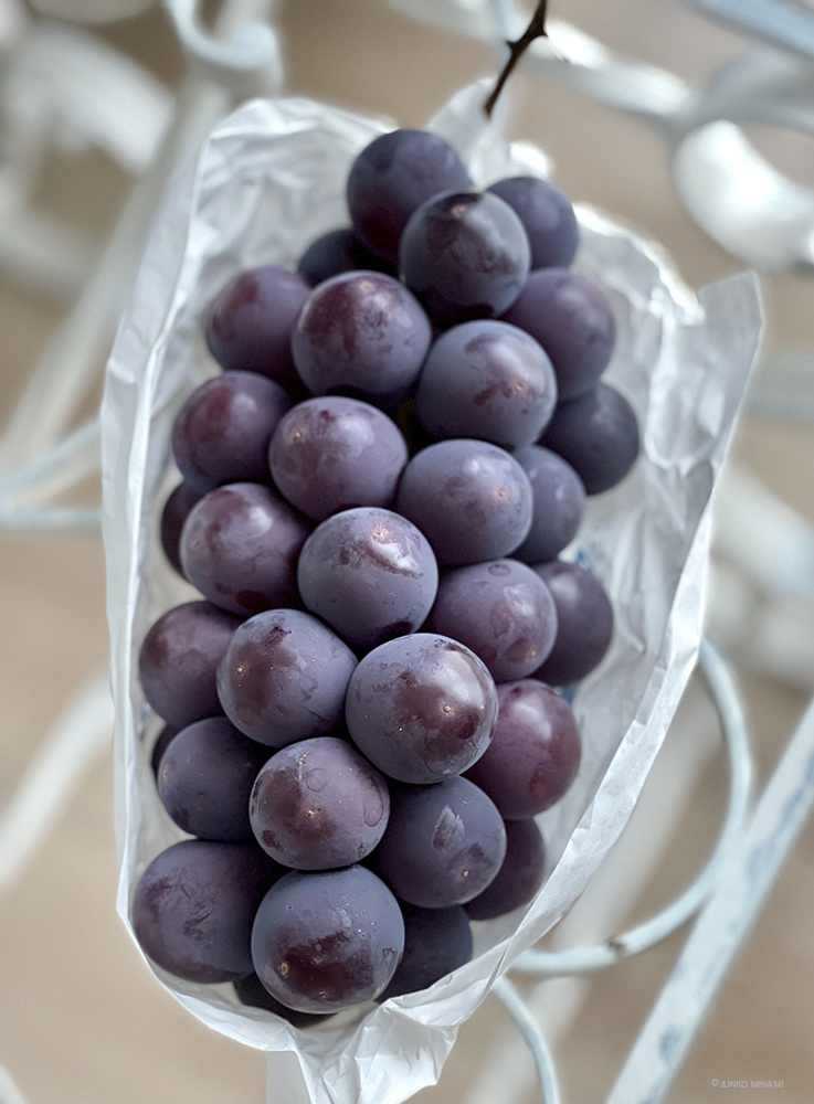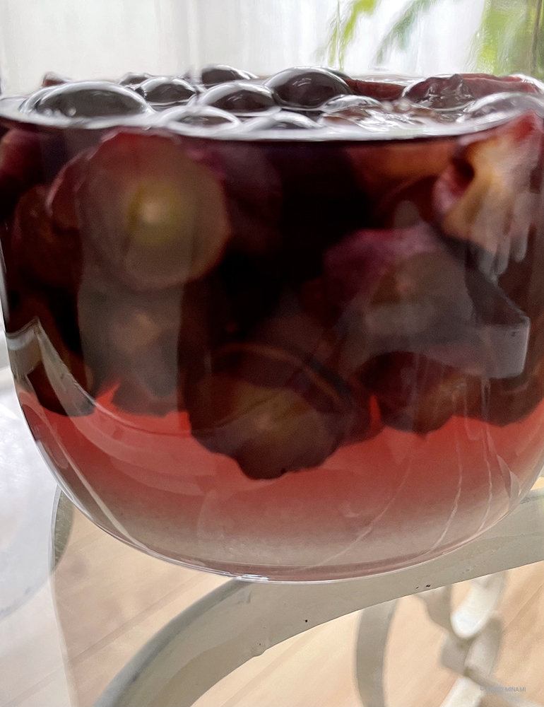 ぐんぐんと葡萄のエキスが抽出されていて、まるでコンテンポラリーアート。きれいなシロップに出来上がったら、ジンに混ぜたりソーダで割ったりミルクに混ぜたり、お肉のソースやドレッシングにも。
