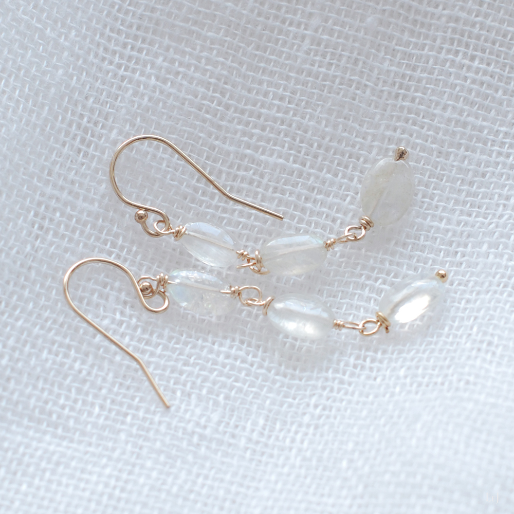 ほのかにイリデッセンスを湛えるオパールのピアス。エチオピア産のハイクオリティな素材を、大切なストックの連から使いました。ルビーやエメラルドなどの華やかな色彩とはまた違った、慎み深さを感じさせる半透明の乳白色、言葉で表せない気品を感じます。その、とろみのある光沢とゴールドとの相性のよさは撮影もとても難しく、画像では十分に表現することができませんでした。温かみとやわらかさ、儚さと美しさすべてを兼ね備えているようなオパールです。