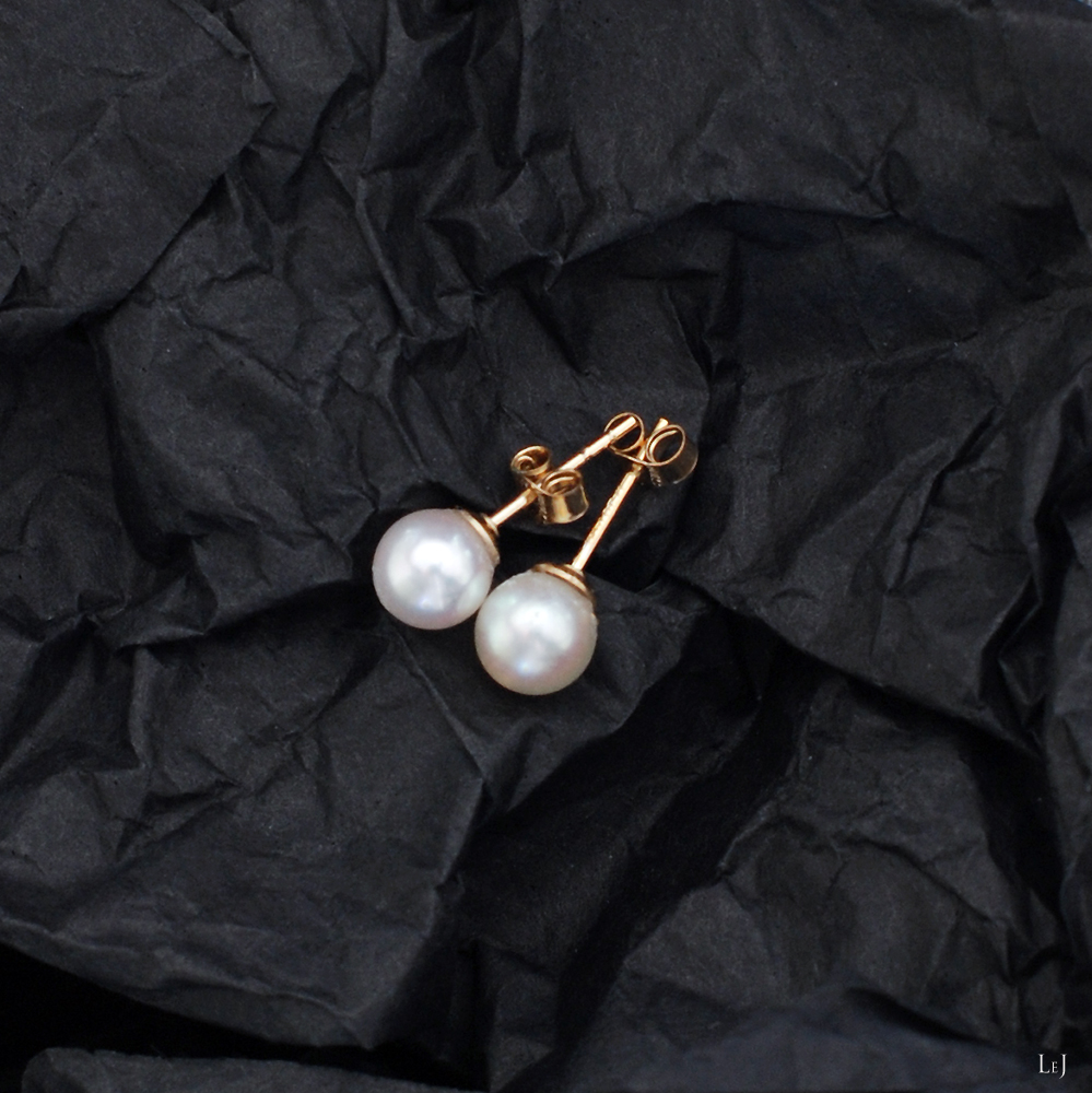 ⌀8mmのアコヤパールでスタッドピアスを作りました。