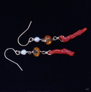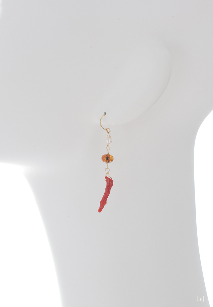 枝珊瑚と琥珀とパール、LeJが大好きな素材ばかりを集めたピアス Dolce77をONLINE STORE公開しました。