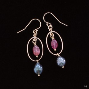 素材:トルマリン・タヒチ黒蝶パール・K14ゴールドフィルド