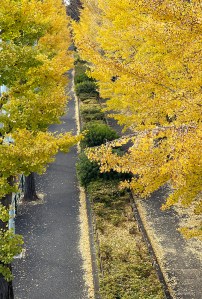 バスから外を見ていたら、今年はもう外苑前にも見に行けなかったと思っていた銀杏がとても綺麗でした。投薬も終わってからすぐに帰りのバスに乗って、いつもより二つ手前で降りて、銀杏並木を歩くことにしました。今日は夕方から雨の予報でしたけれど、冬のやわらかな陽に染まるような銀杏は心を包み込むように優しくて、上着を脱いで手にもつくらいの陽気のなかよいお散歩になりました。