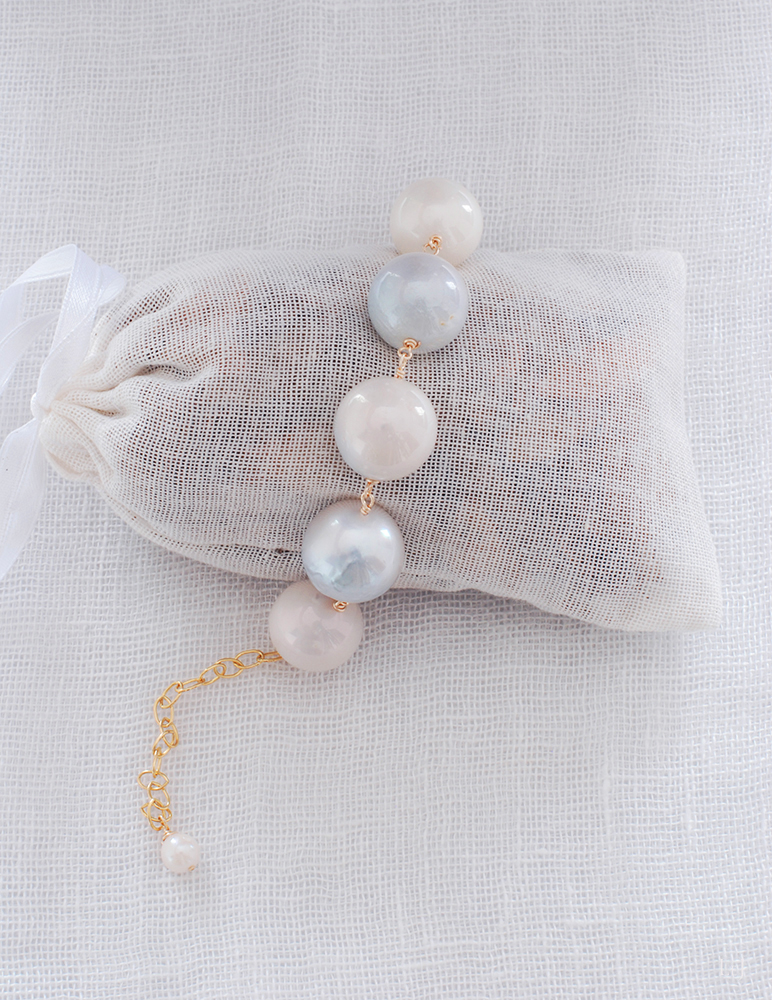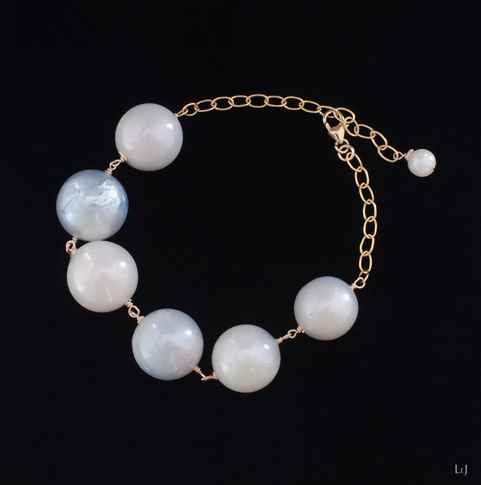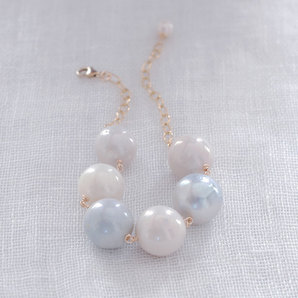 まろやかなクリーミーホワイトからペールグレイの白蝶パールでブレスレットを制作しました。