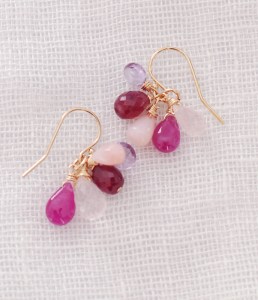 ブーケのように天然石を束ねて、小さなピアスを作りました。