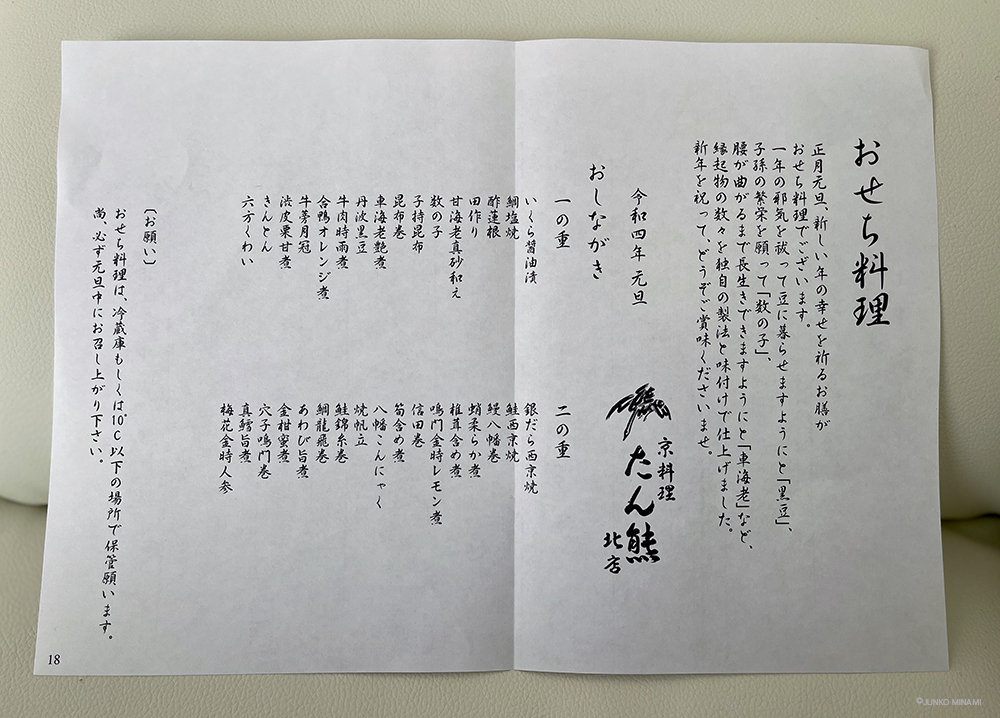 今年も、おせち料理は京都のたん熊北店からお取り寄せ。