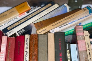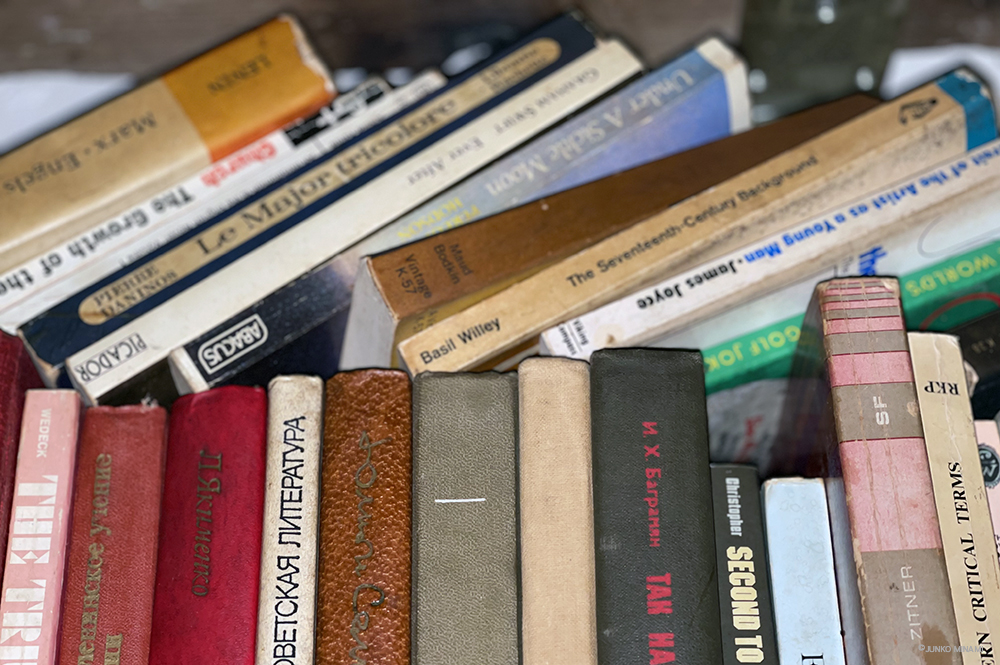 洋書を集めてインテリアを組むデザインの会社があるそうです。アルファベットだけだと統一性があって落ち着きます。