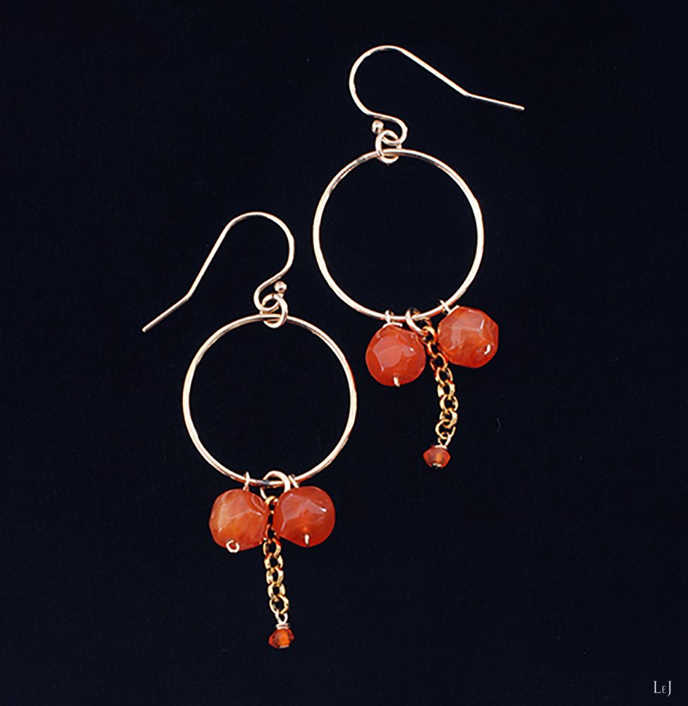 可憐で温かみがあり、肌馴染みがよいトーンの天然石素材、カーネリアンでピアスを作りました。