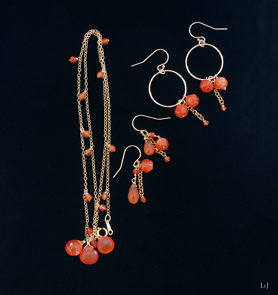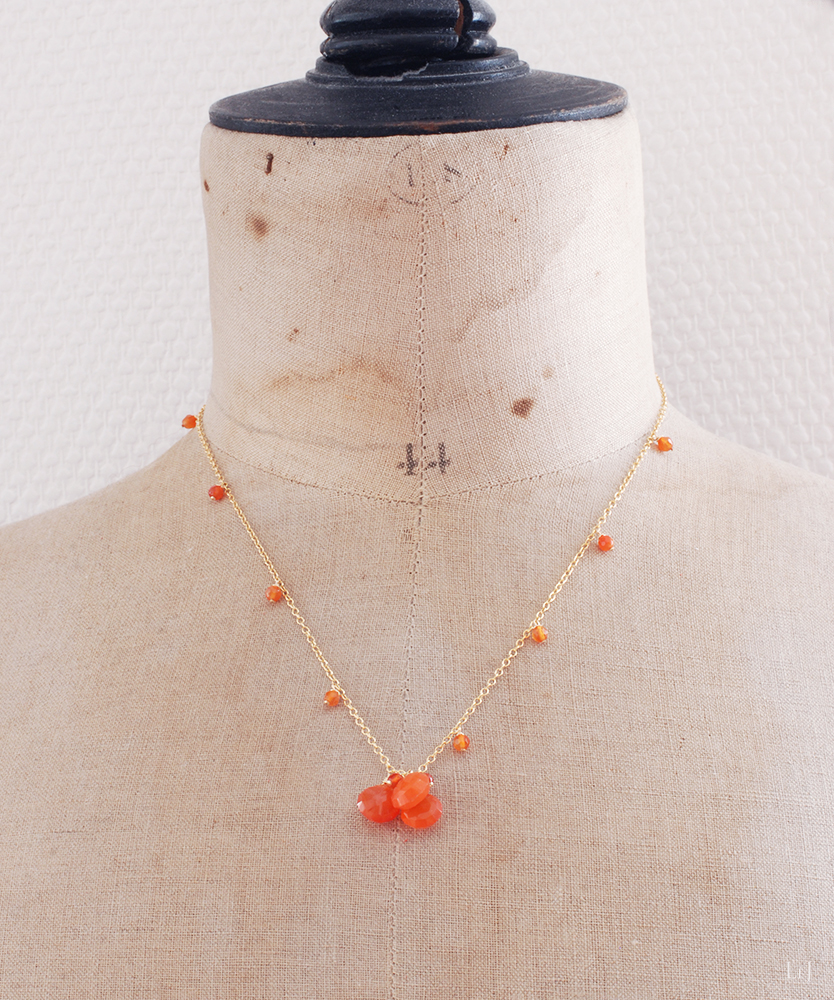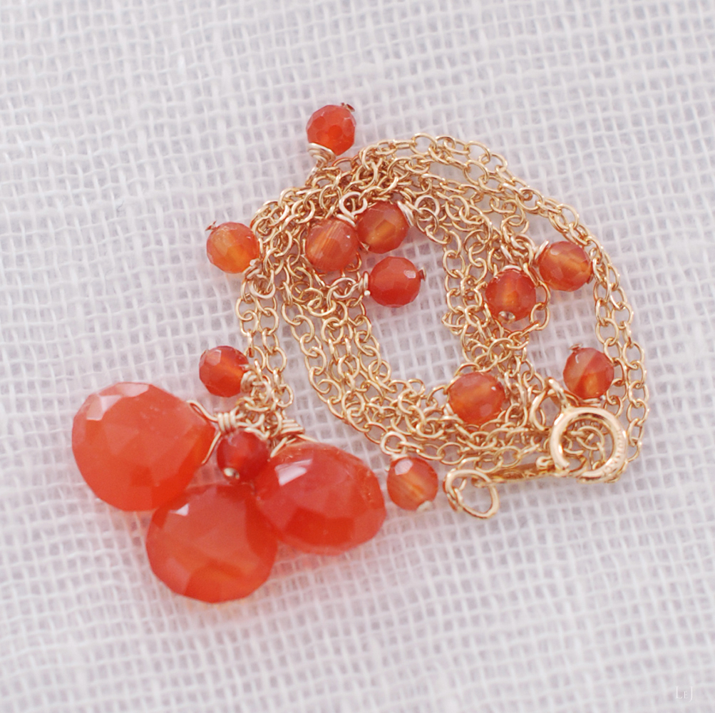 可憐で温かみがあり、肌馴染みがよいトーンの天然石素材、カーネリアンでネックレスを作りました。