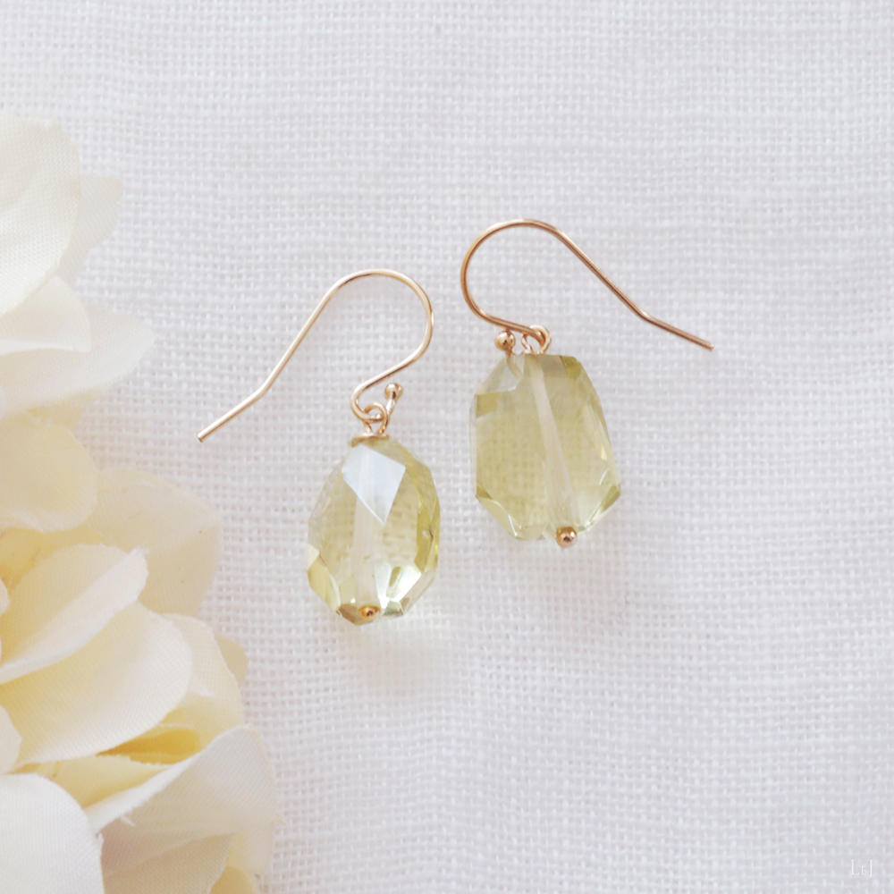 滑らかなカッティング、クリアなレモンクオーツのピアス。