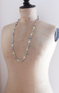 プリナイトはコインカット、ターコイズがリズムを作り、ケシパールがほんの少しの変調を添える。夏のドレスに、ニットに、秋冬のタートルにもコーディネートしていただけるジュエリーに仕上がりました。長さは81cm。