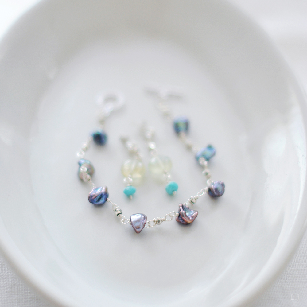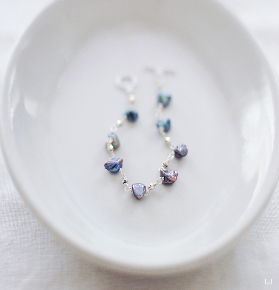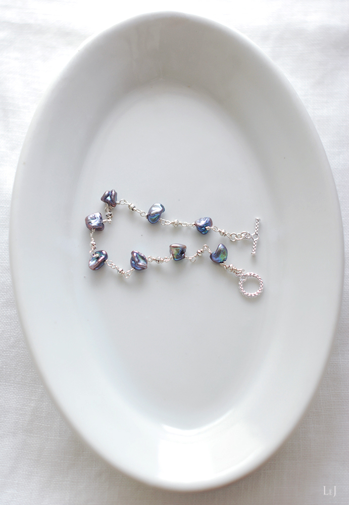ケシパールとパイライトで作った、シンプルでスパイシーなブレスレット。