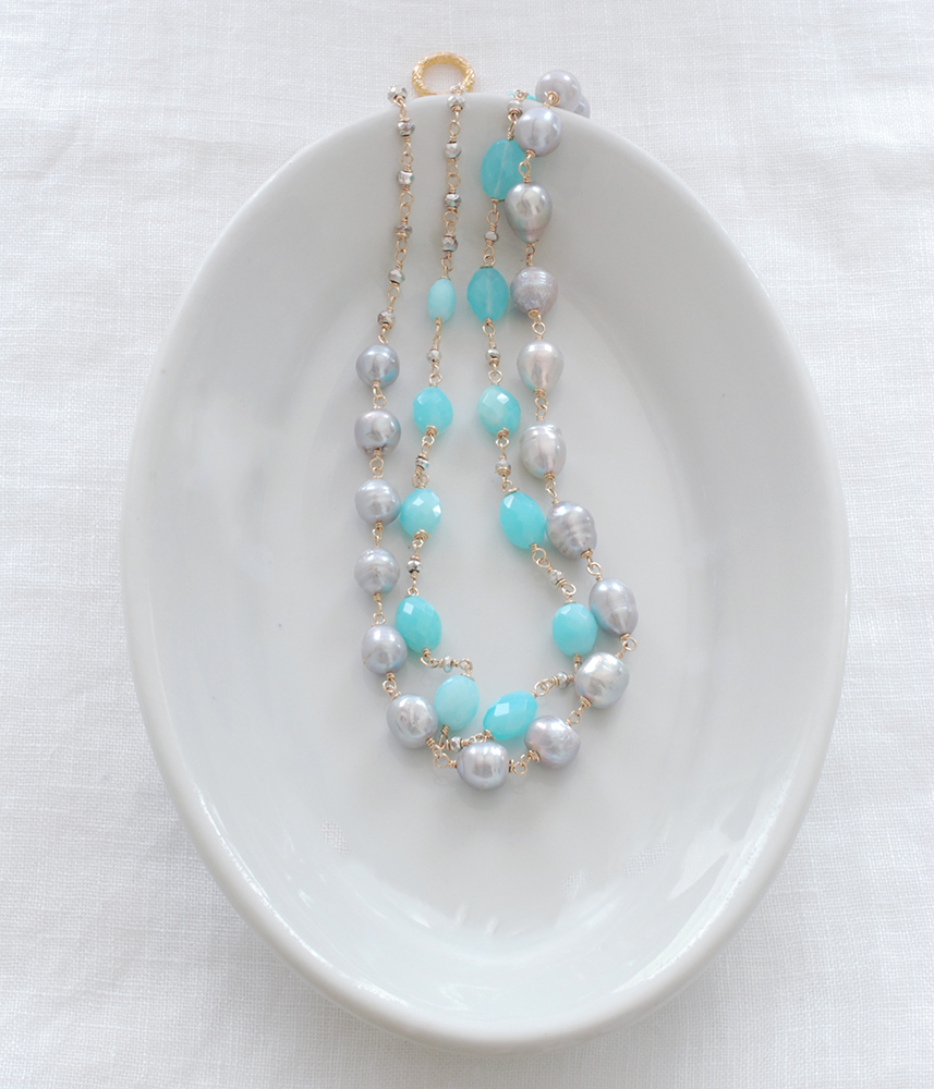 美しいジュエリーに仕上がりました。12mm×10mmサイズのバロックパールはこれでストックを使い切って終了します。お目に留めていただければ幸せです。