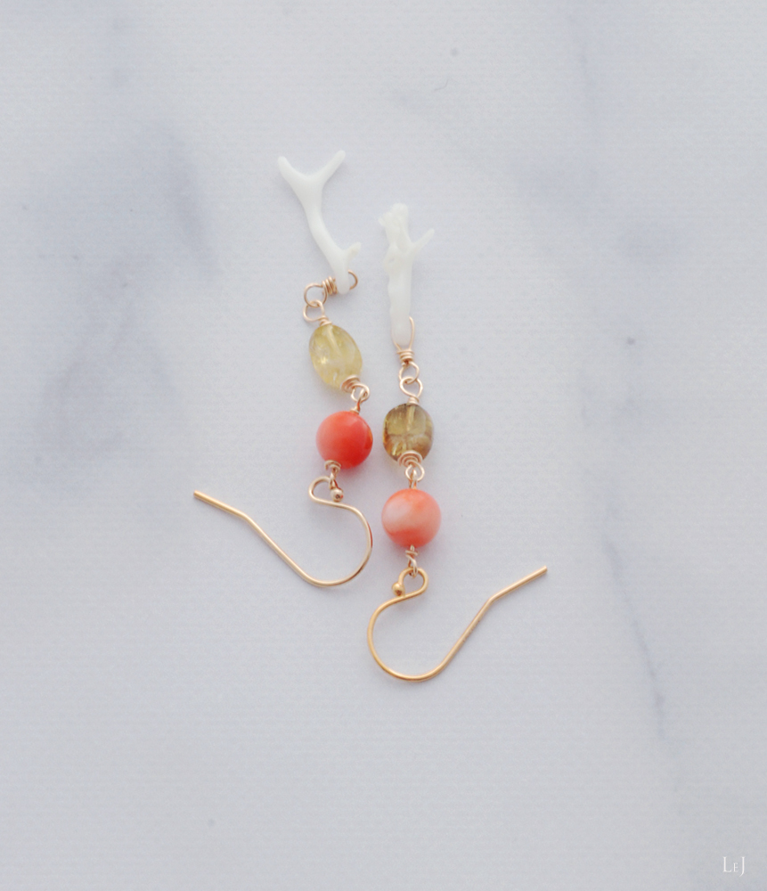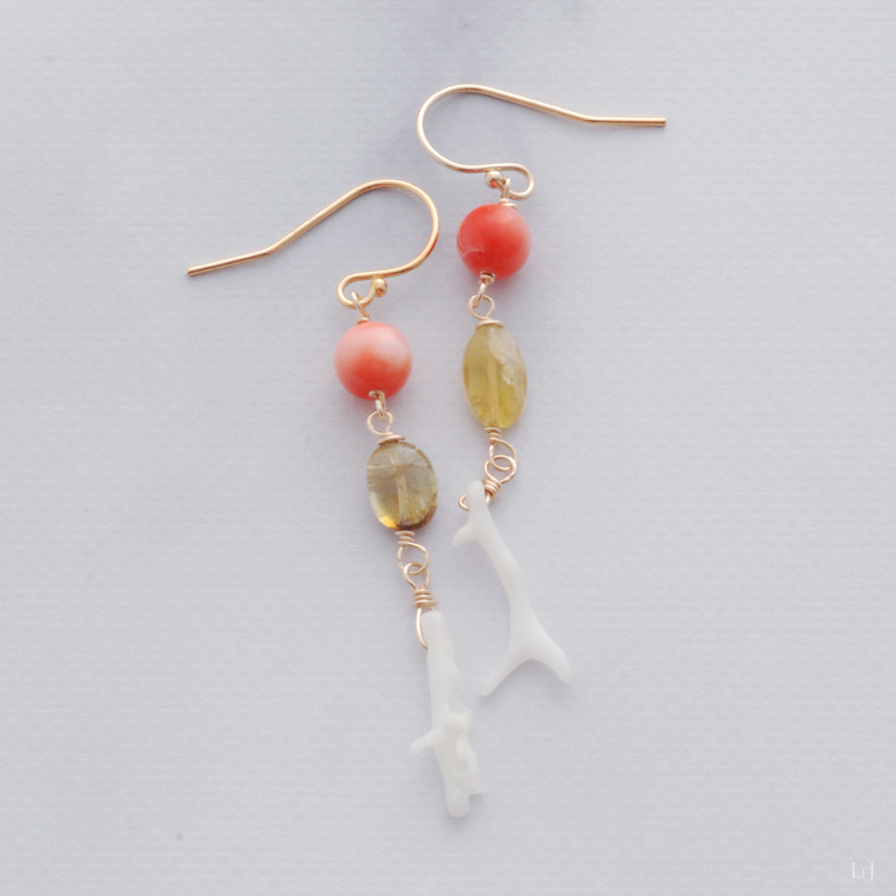 素材:珊瑚・イエロートルマリン・ホワイトコーラル・K14ゴールドフィルド