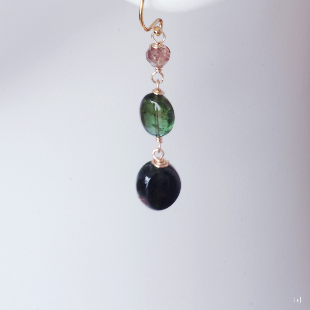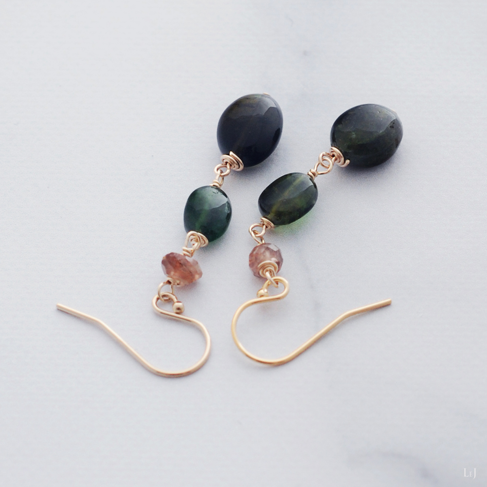 グリーントルマリンとアンダリュサイト、ムーディでラグジュアリーなピアス