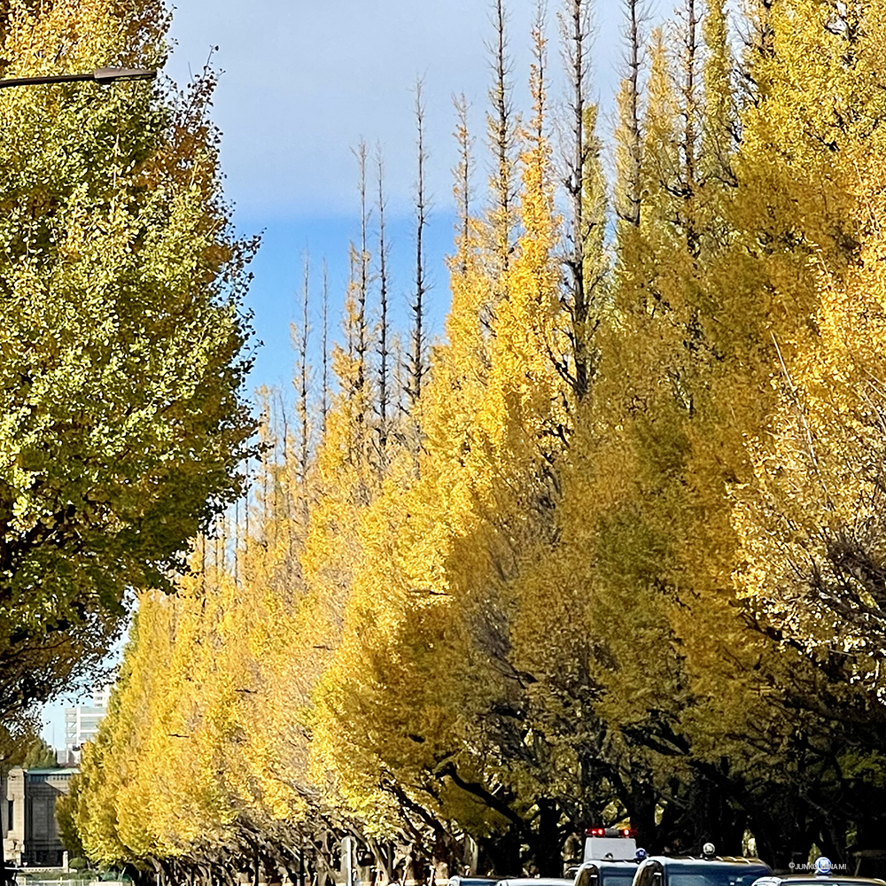 昨日の大雨とは打って変わって晴れた今日、外苑前の銀杏並木を観てきました。