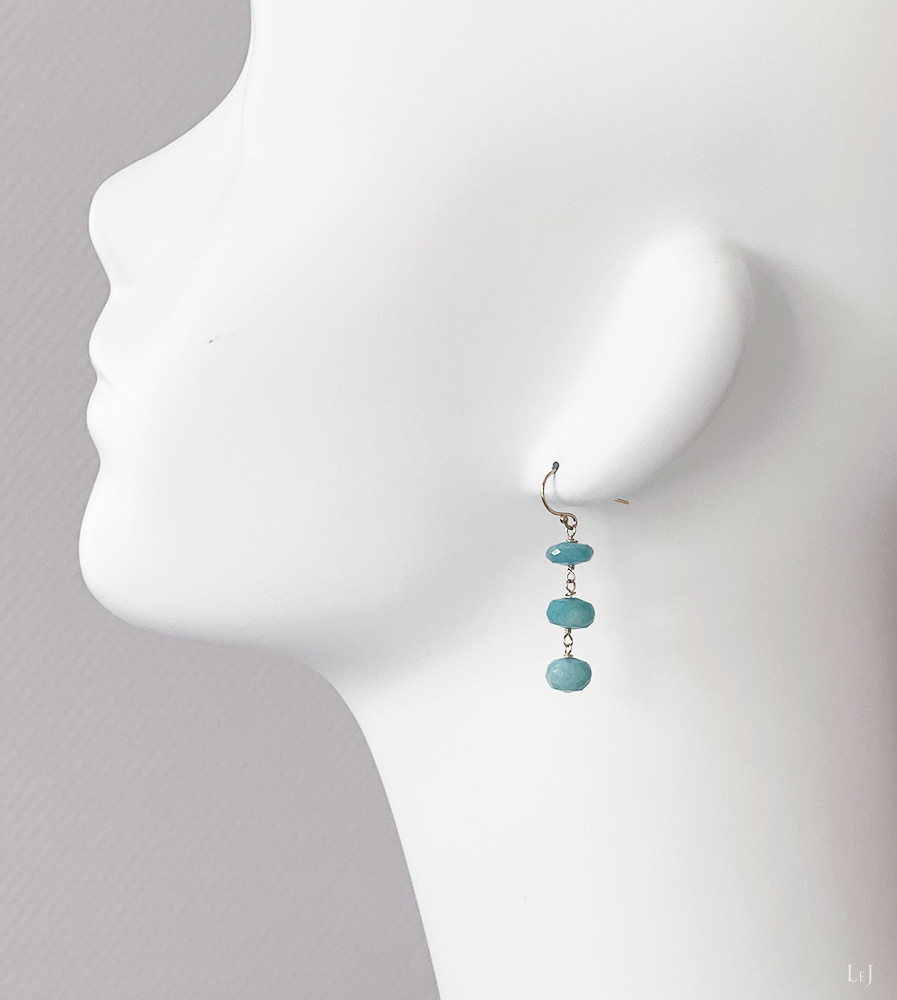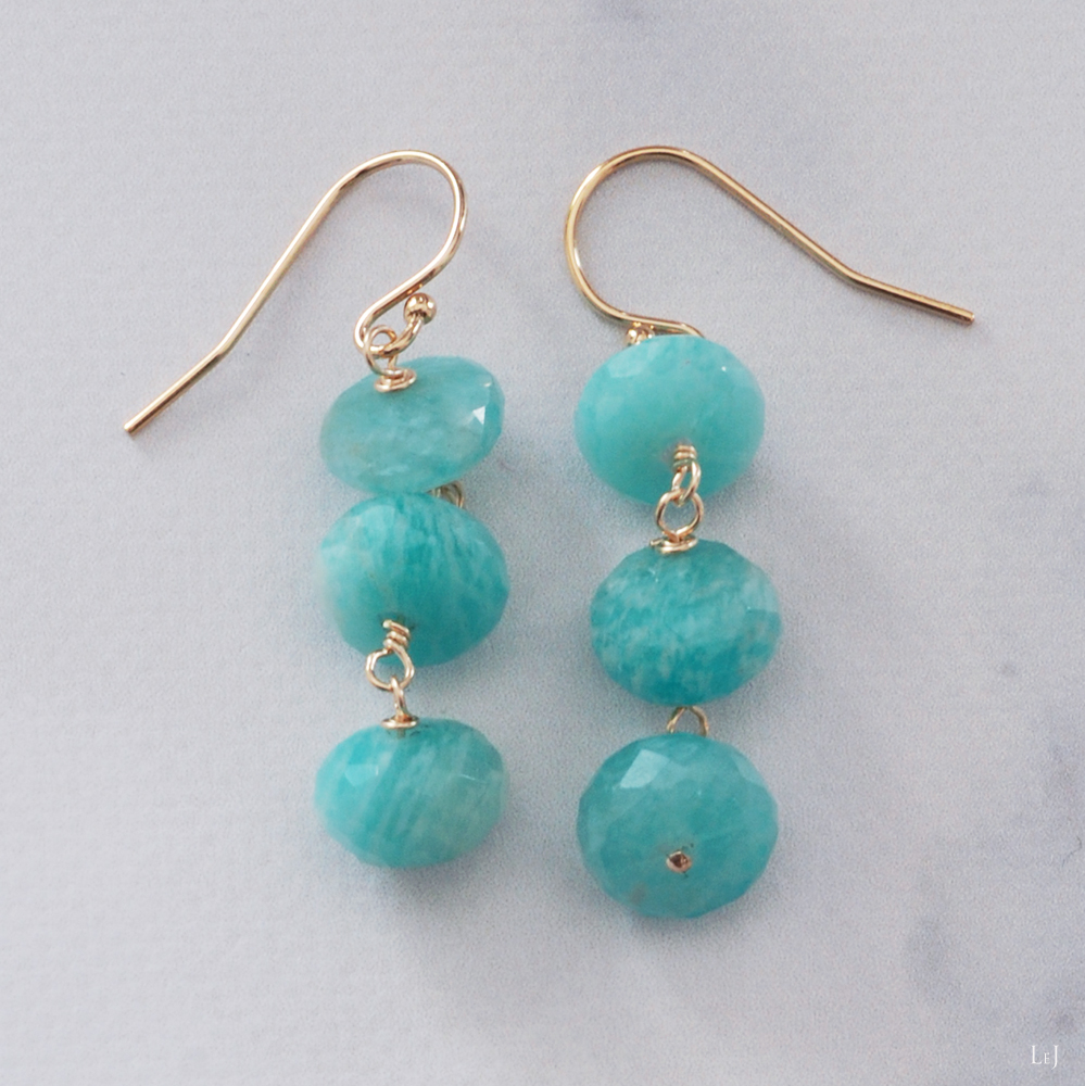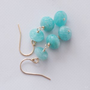 今まで目にしたことがないような、瑞々しいアップルグリーンのアマゾナイトでピアスを作りました。