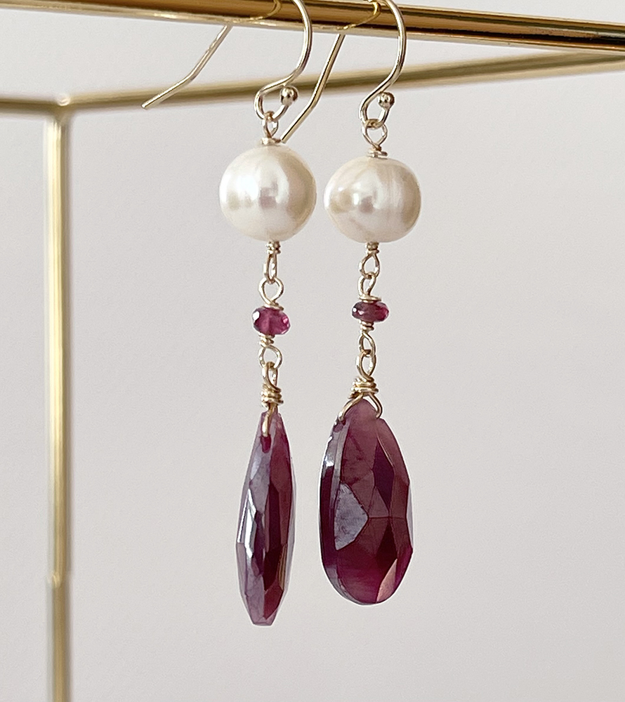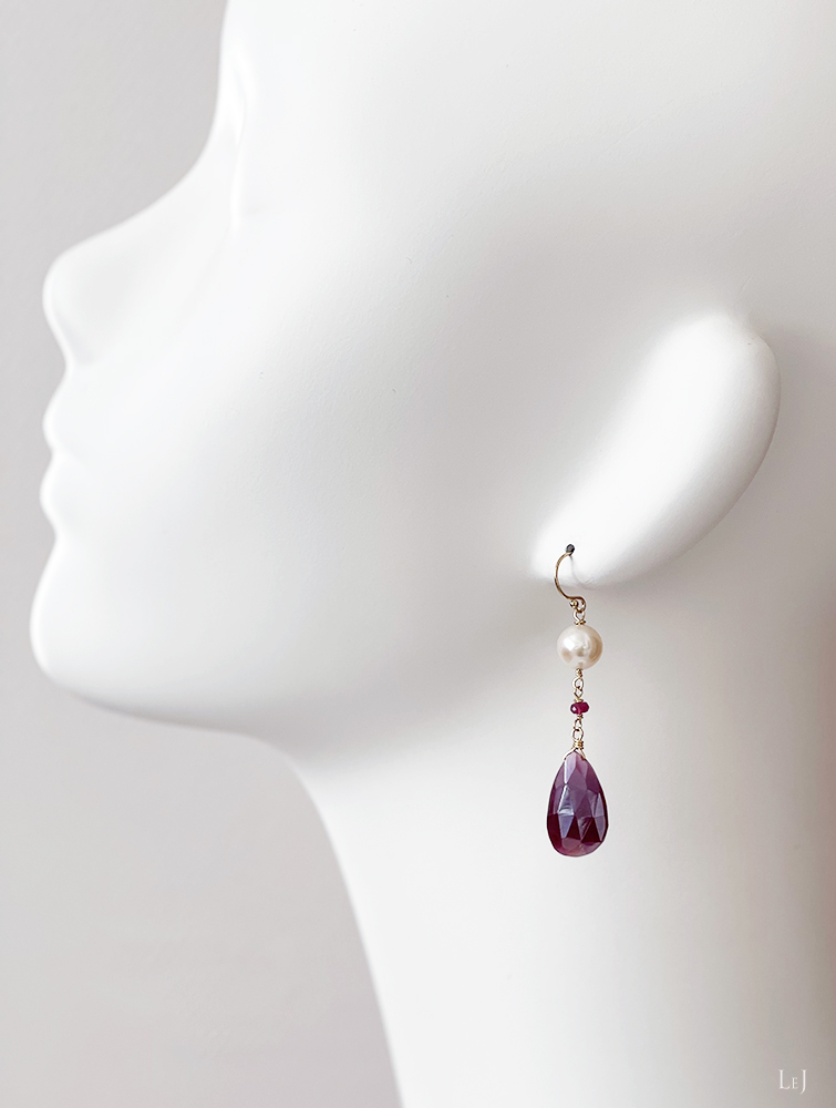 ルビーとトルマリン、やわらかな雰囲気のバロックパールのピアス