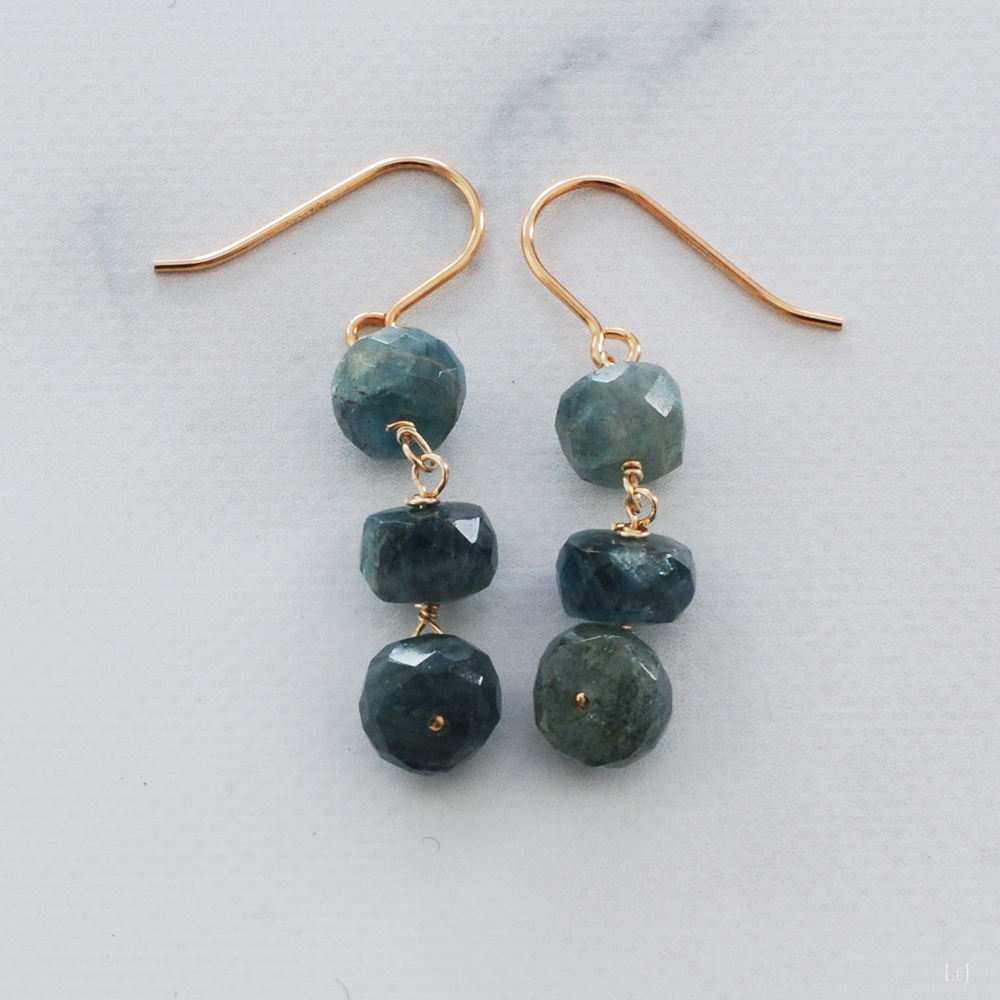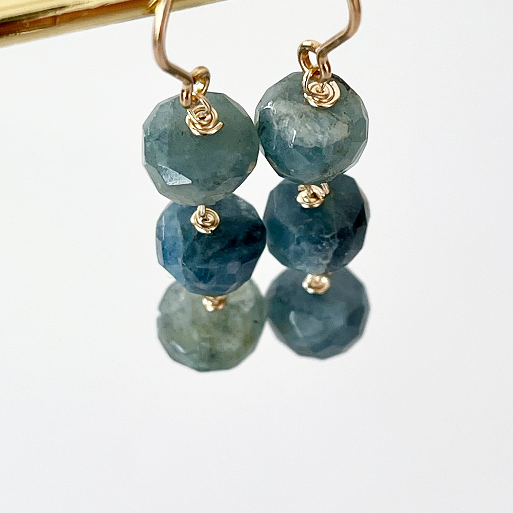 落ち着いたグリーンのモス(苔色)がとても表情豊か、カッティングが丁寧で好感が持てる、モスアクアマリンの魅力をそのまま活かしたピアスです。