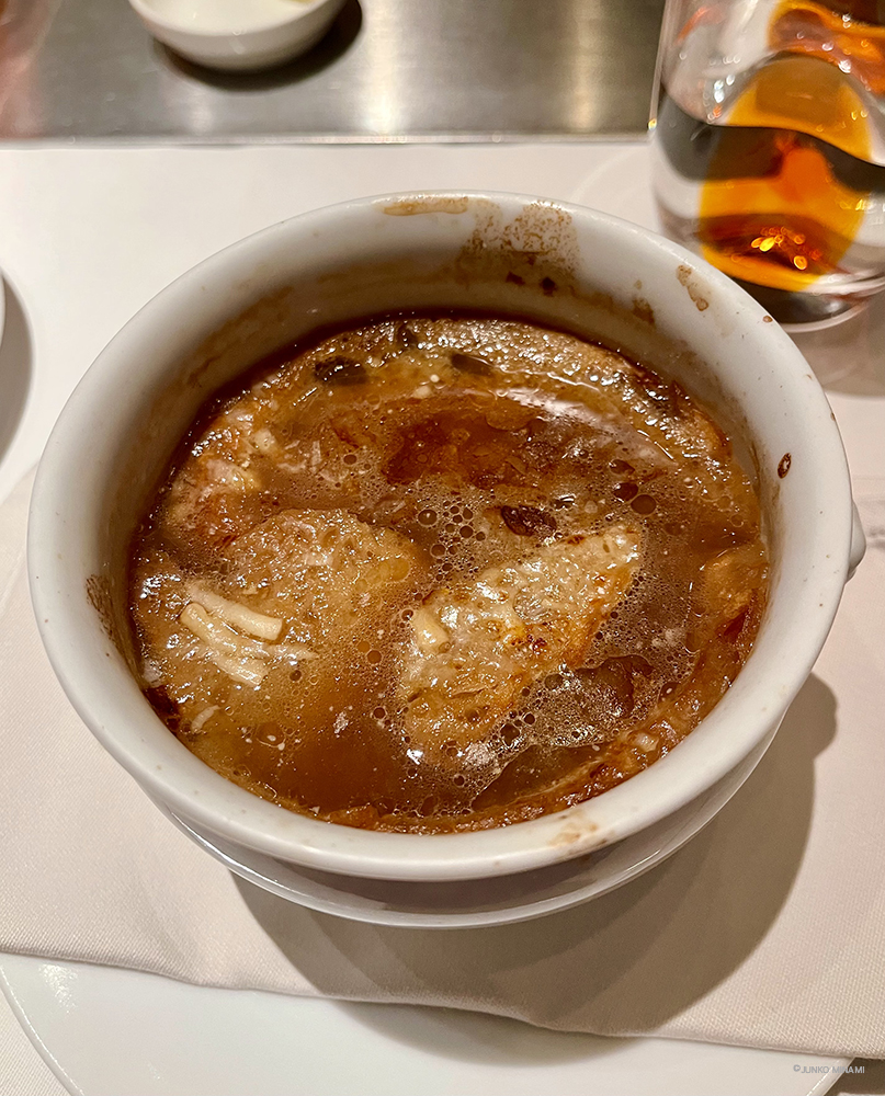 写真は、オニオングラタンスープ。二日間以上じっくりと煮込んだ、美味しくからだが芯から温まるものでした。