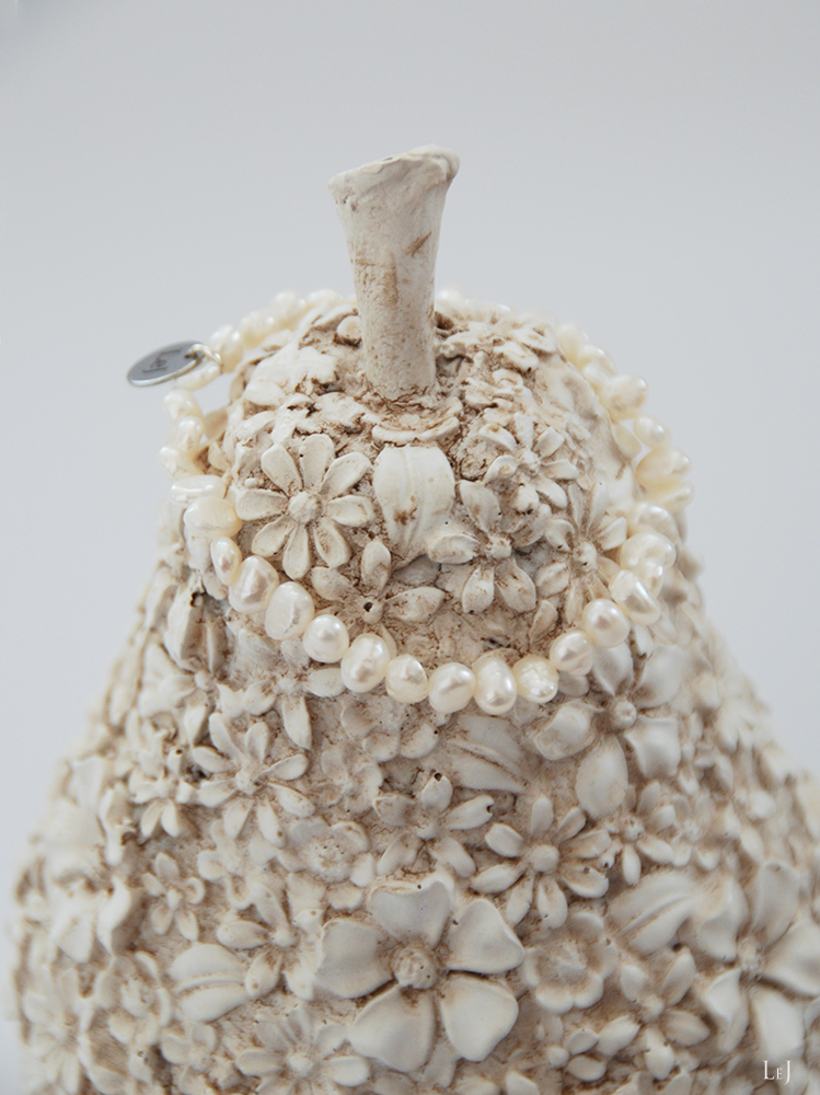 色はクリーミーホワイト。6×4×4mmのサイズは一点でもレイヤードでも着けやすい、ほどよいサイズ感。LeJのブランドプレートはシルバー色を選びました。