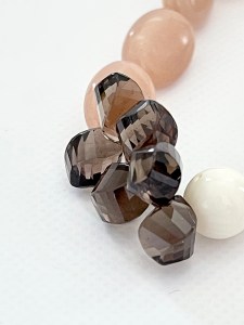 ピーチムーンストーンとボーン、センター部分にはハイクオリティのスモーキークオーツ。
