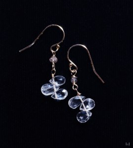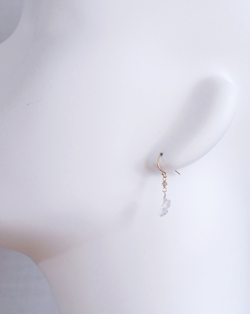 純度の高いアクアマリンと天然ジルコンのピアス。シンプルで小さな作り、オフィスでもどうぞ。
