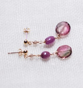 ウォーターメロントルマリンとルビー、ジルコンの sweet &ラグジュアリーなピアス