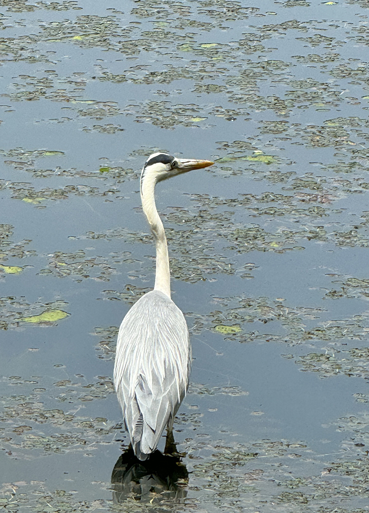 写真は、修学院離宮のお庭にいたアオサギ。この鳥を見ると幸運がやって来るのだそうです。淡いグレイのトーンの羽がとても美しく、どこか高貴な姿をしていました。