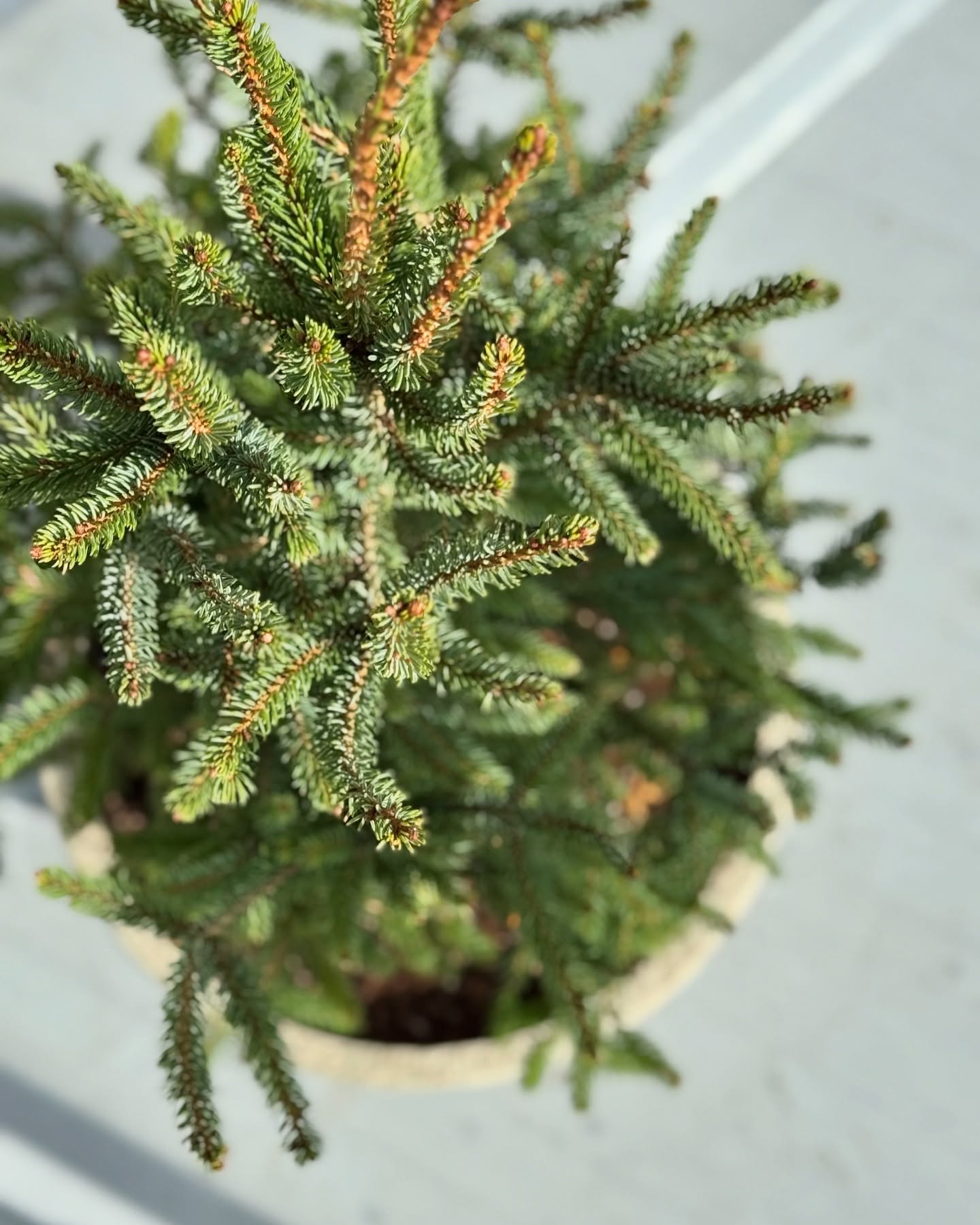 クリスマスツリーとして飾られる針葉樹ですけれどそのためではなく、工事が終わって明るさが戻ったので木を増やそうと、よく知る店で購入したものです。