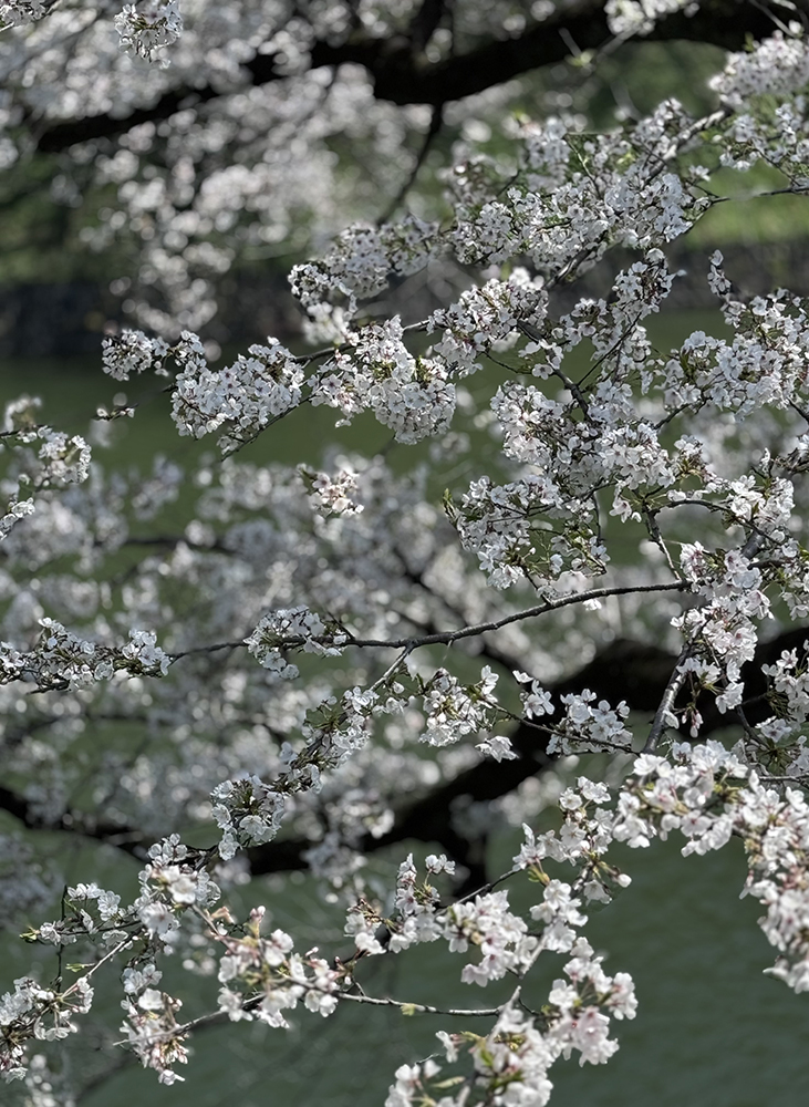 雨が続いたこともあって、満開の時期は短くなりました。3日続いた雨から晴れた日に千鳥ヶ淵に行って、一人でそっと桜を観ました。