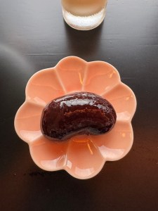 とらやの赤坂本店で、一年で3日間だけ販売される更衣というお菓子を予約しておいて買いに行って、今年初めての宇治金時を、画像はそのオプションの花豆です。ふっくらしたお豆さんを口に含むと、控え目な甘さに頬が緩みました。肌寒い日なのにかき氷をいただいてしまい、ショールにくるまりました。