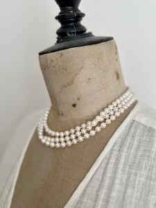 120cmととても長い、アコヤパールのネックレスを作りました。私が自分用に作って着けているものをもう一点作って、商品化したジュエリーです。ほのかなバロック形状のパールは8mm。