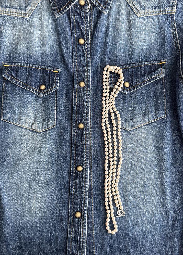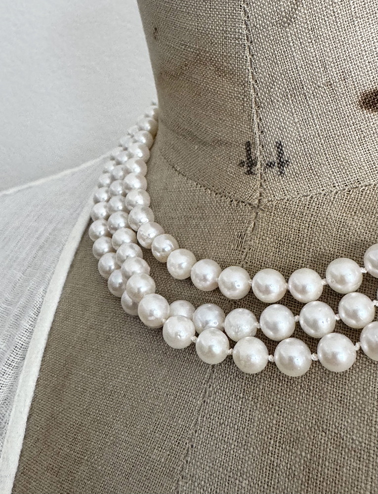 120cmにしたのは、3連で着けていただけるように。きちっと揃えて着けるよりも、ノースリーブの襟元に、デニムに、秋にはクルーネックやタートルのニットに合わせても素敵です。大人の女性にこそ似合うバロックパールのロングネックレス。襟元で、頬を明るく照らすジュエリーです。