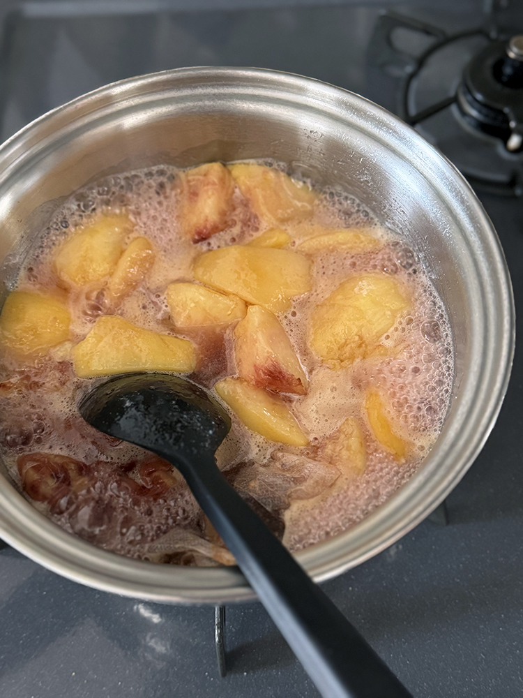 ゆっくり追熟させていたつもりの桃が慌てるくらいになったので、一つだけジャムにしました。