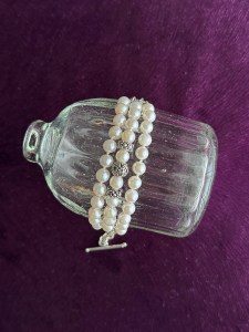 お手持ちのパールのベーシックなネックレスと合わせて、アコヤパールを普段にお楽しみください。同じパールを使って、120cmのロングネックレスも製作しました。ブレスレットも数種類作りました。