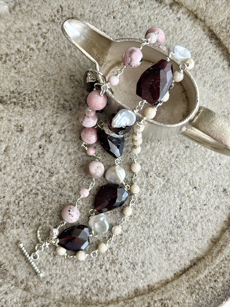 ガーネットとリバーストーンのブレスレットdolcevita-gb