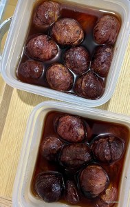 栗が旬を迎え、合計3回も渋皮煮を作りました。回を重ねる毎に作業にも慣れてくるのですが、画像のものは今年1度目のもので、途中で渋皮が剥がれてしまったり傷をつけてしまったり最後にお砂糖を入れて煮る前の掃除が足らなかったりとあれこれ不十分だったことがよく分かります。そっと、でも力を入れて鬼皮を剥いたり、アクを抜くための5回の煮こぼしをする時間はどこか愛おしく、バニラビーンズを入れたりブランデーを足したりと手を加え、とても美味しくできました。残りは冷凍して、来年の秋までのお茶請けにしようと思います。