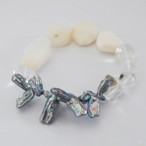 ケシパールとホワイトオパール、クリアクォーツがクールビューティを作り出すブレスレット。