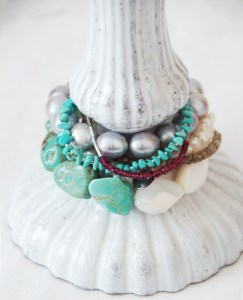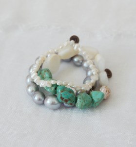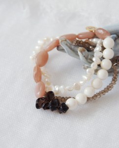 今月はブレスレットをたくさん作りました。とくに思いを込めたものは、やはりお客さまがお目に止めてくださいました。主役になりそうなもの、脇役のようだけれどいつも手に取っていただけそうなもの、色々と工夫してみました。