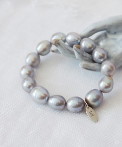 大粒グレイのパールのブレスレット。