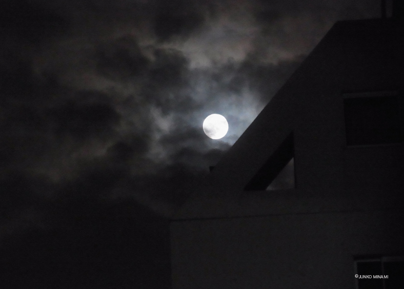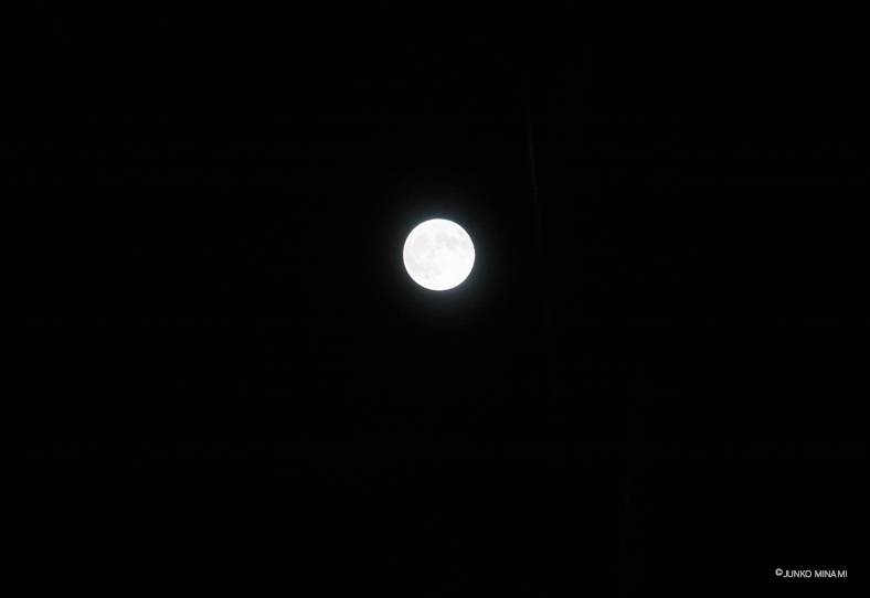 レッスンもあって、帰り道に用事をあちこち済ませてバスから降りると、くっきりとしたお月さまが見えました。すぐにコンパクトカメラを持って、マンションの上の階の階段から撮ってみました。