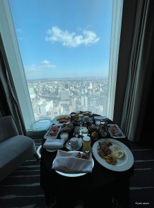写真は、寝坊して朝食を食べそびれそうになって、インルームでいただいた時のものです。高層の素敵な落ち着いた趣のホテルでした。