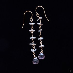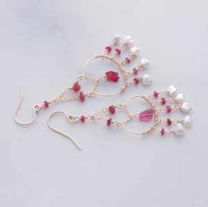 アコヤ角ケシパールとスピネルのピアス
