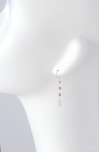 タンブルシェイプのトルマリンとアコヤ砂ケシパールのシャンデリアピアス。